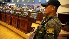 Пред погледите на войниците, влезли в парламента в пълно бойно снаряжение, 38-годишният държавен глава седна на мястото, запазено за председателя на Конгреса и допря длани като за молитва. Според самия него, той се помолил за търпение към депутатите, малцина от които се появиха за специалната парламентарна сесия.