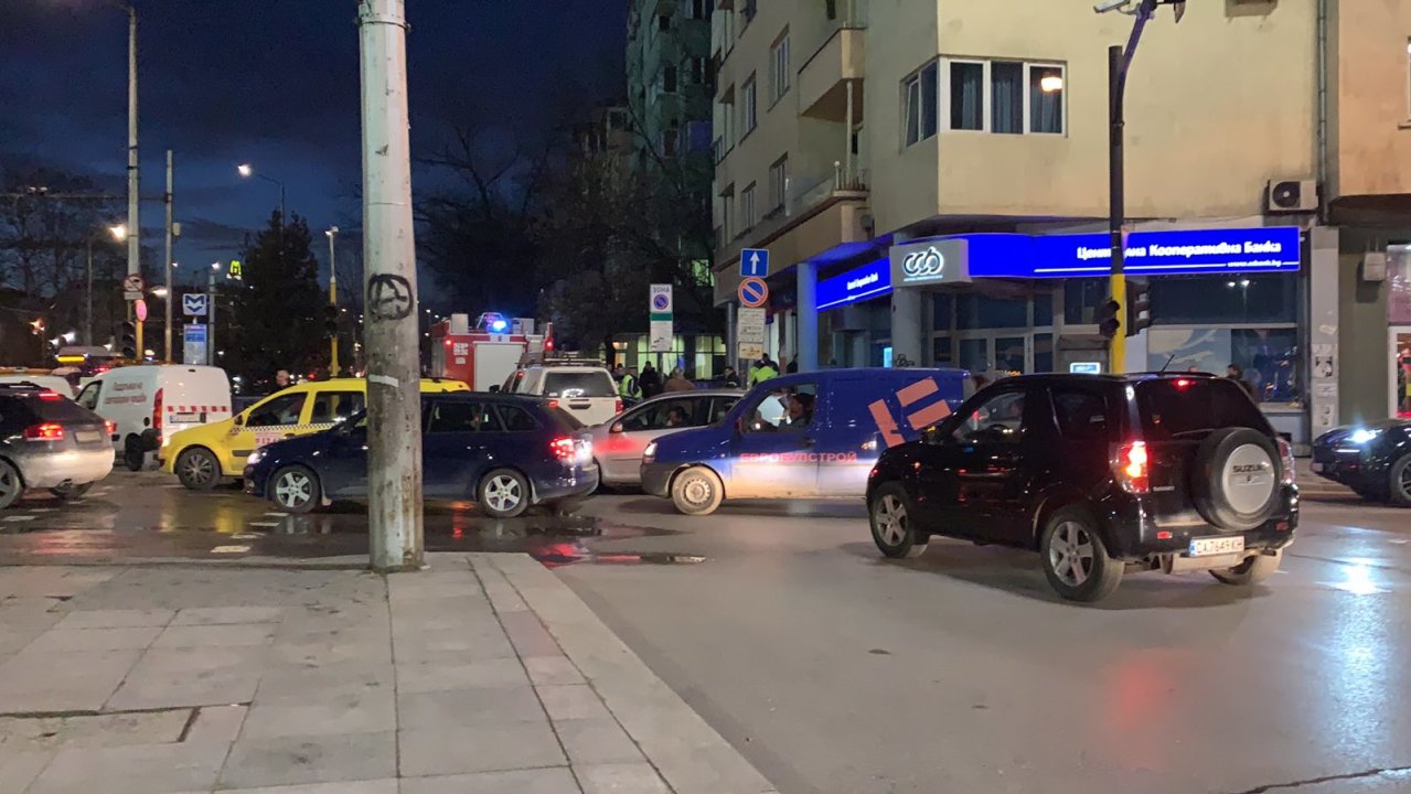 Инцидентът в пиковия час предизвика задръстване на едно от най-натоварените столични кръстовища. На място има регулировчик.