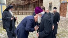 Той бе посрещнат от Негово Преосвещенство Величкия епископ Сионий и с Негово Светейшество Българския патриарх Неофит.