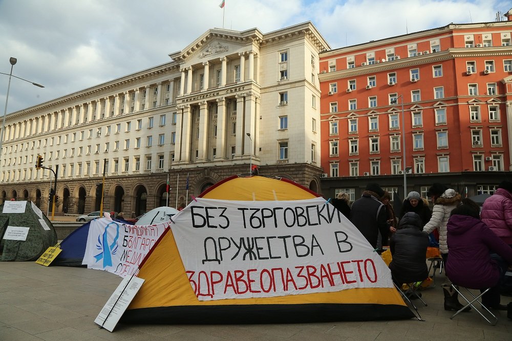 Към протестиращите от Синдиката на медицинските специалисти се присъединиха майки на деца с увреждания, които обявиха безсрочен протест с палатков лагер пред Министерския съвет с настояване за оставка на социалния министър Деница Сачева, защото пренебрегвала Закона за личната помощ и в страната близо 15 хиляди души са без лични асистенти.