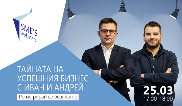 В рамките на един час зрителите на SMEs Webinars ще почерпят от дългогодишния опит на Иван и Андрей, а в специален панел ще могат да зададат своите въпроси към тях, свързани с развитието на успешен бизнес.