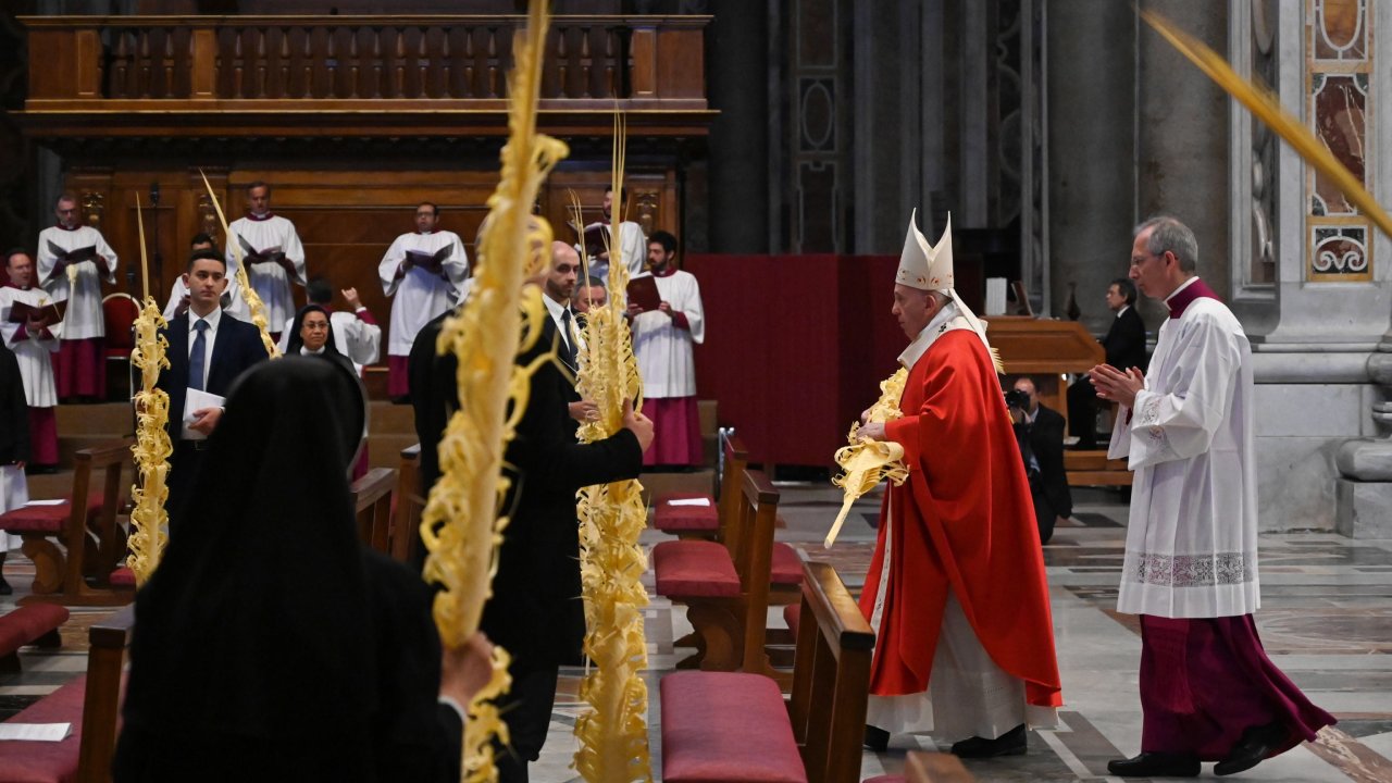 Папа Франциск, главата на Римокатолическата църква, отслужи днес необичайна литургия по повод Палмова неделя.