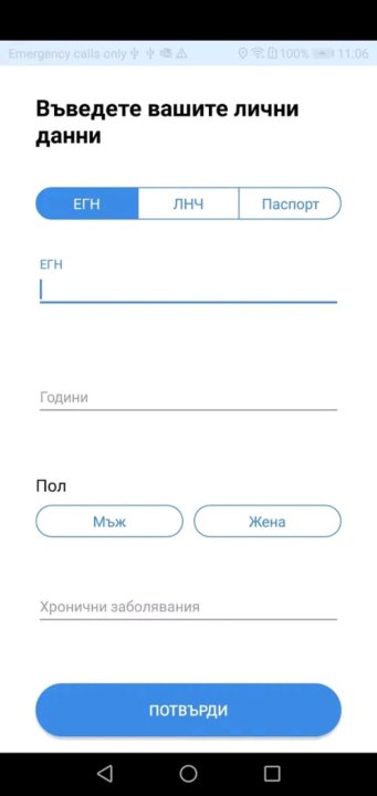 Следващата стъпка е да попълни личните си данни - ЕГН/ЛНЧ/паспорт, пол и информация за хронични заболявания, ако страдате от такива.