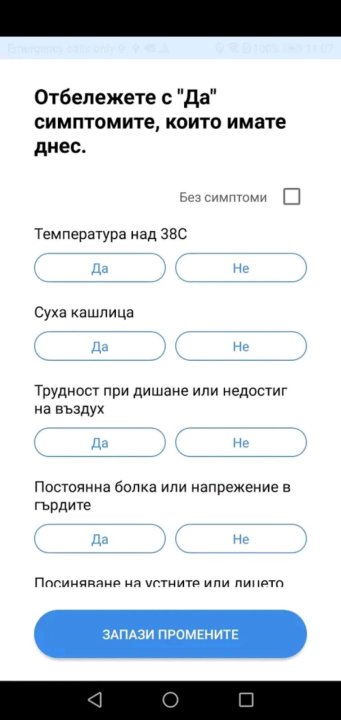 След това потребителят може регулярно да обновява данните за евентуални симптоми - температура, задух, кашлица и т.н.