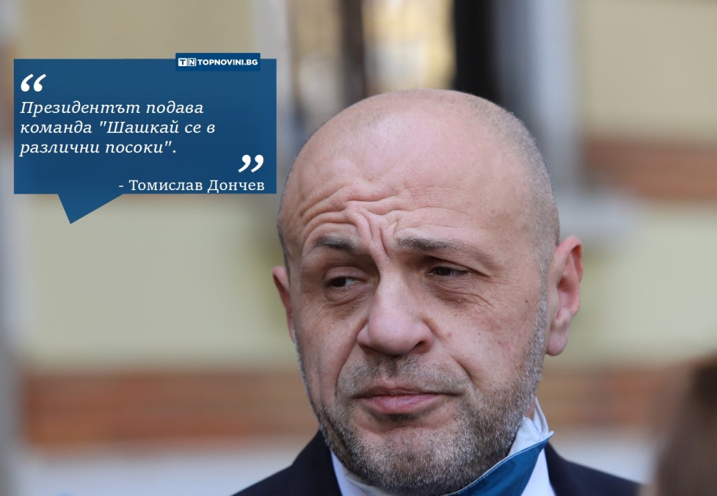 Вицепремиерът коментира и командите на държавния глава: "Доколкото си спомням от скромния си опит във въоръжените сили, армейските команди "Кръгом" и "Ходом марш" се подаваха от висшите към по-нисшите чинове с цел да извършват прости механични движения, без да осъзнават смисълът им. Не мисля, че в тази ситуация подобен режим е приложим. Първо, тук няма новобранци. Второ, не сме на занятия по стрелева подготовка. Всичко това ми прилича на един шарж от военните сили, където някой, с цел да унижи другия, му подава командата "Шашкай се в различни посоки", заяви Томислав Дончев.