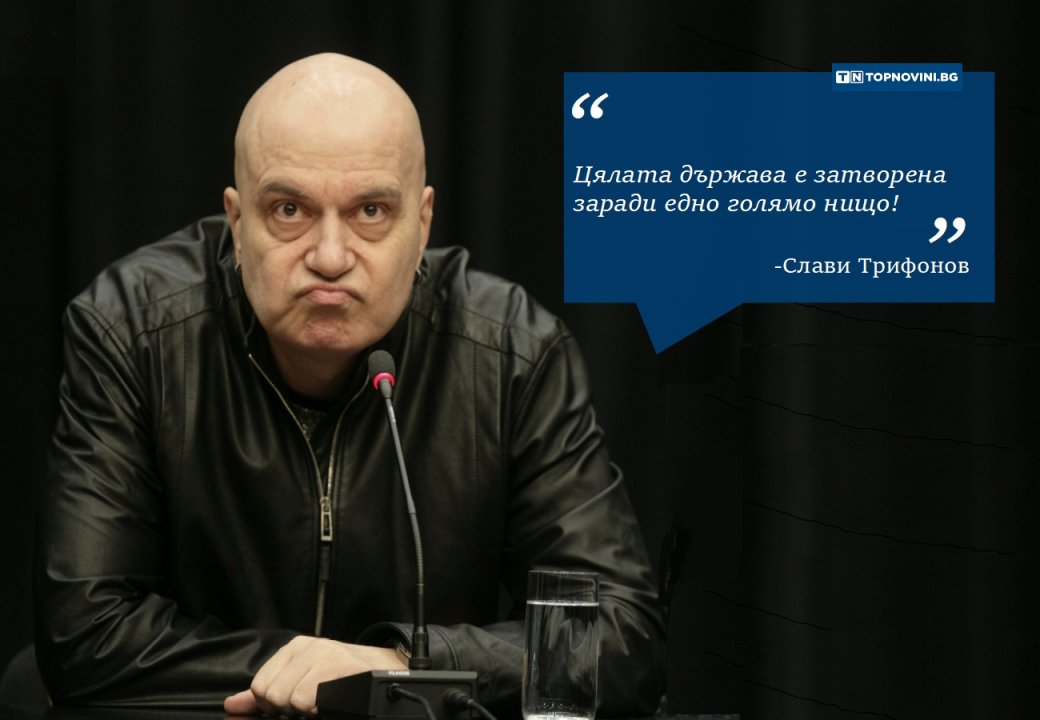 "По законите на България за епидемия се смята, когато на 10 хиляди души население има 200 болни. Това означава, че на 7 милиона население трябва да има 140 000 болни. А те са 611. Значи цялата държава е затворена, не работи, не функционира, хората губят работата си и са затворени по къщите си, не могат да ходят в парковете и са принудени всеки ден да гледат по телевизията страшните констатации и заплахи на двама генерали заради....нищо!". Думи на телевизионния водещ Слави Трифонов за наложените от правителството ограничения заради коронавируса.