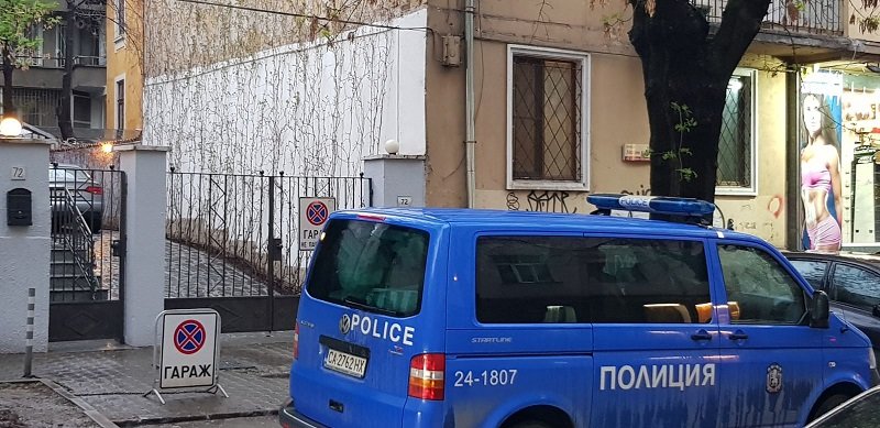 Пред дома на жената в центъра на София има полицаи, които влизат и излизат от къщата.