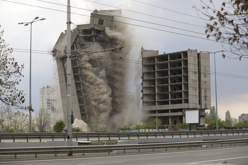 Взривиха една от постройките, символизиращи големите мащаби на недовършените архитектурни проекти на социализма. В минутите между 9:30 и 10:00ч. беше взривена сградата, която бе замислена да бъде дом на ИПК „Родина“.