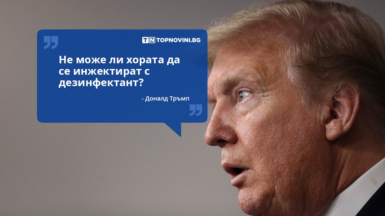 "Виждам, че дезинфектантът убива вируса за една минута. Една минута. Има ли начин да направим нещо такова с инжекция във вътрешността или нещо като почистване? Както виждате, прониква в белите дробове и това има огромен ефект, така че ще е интересно да се провери", попита Тръмп.
