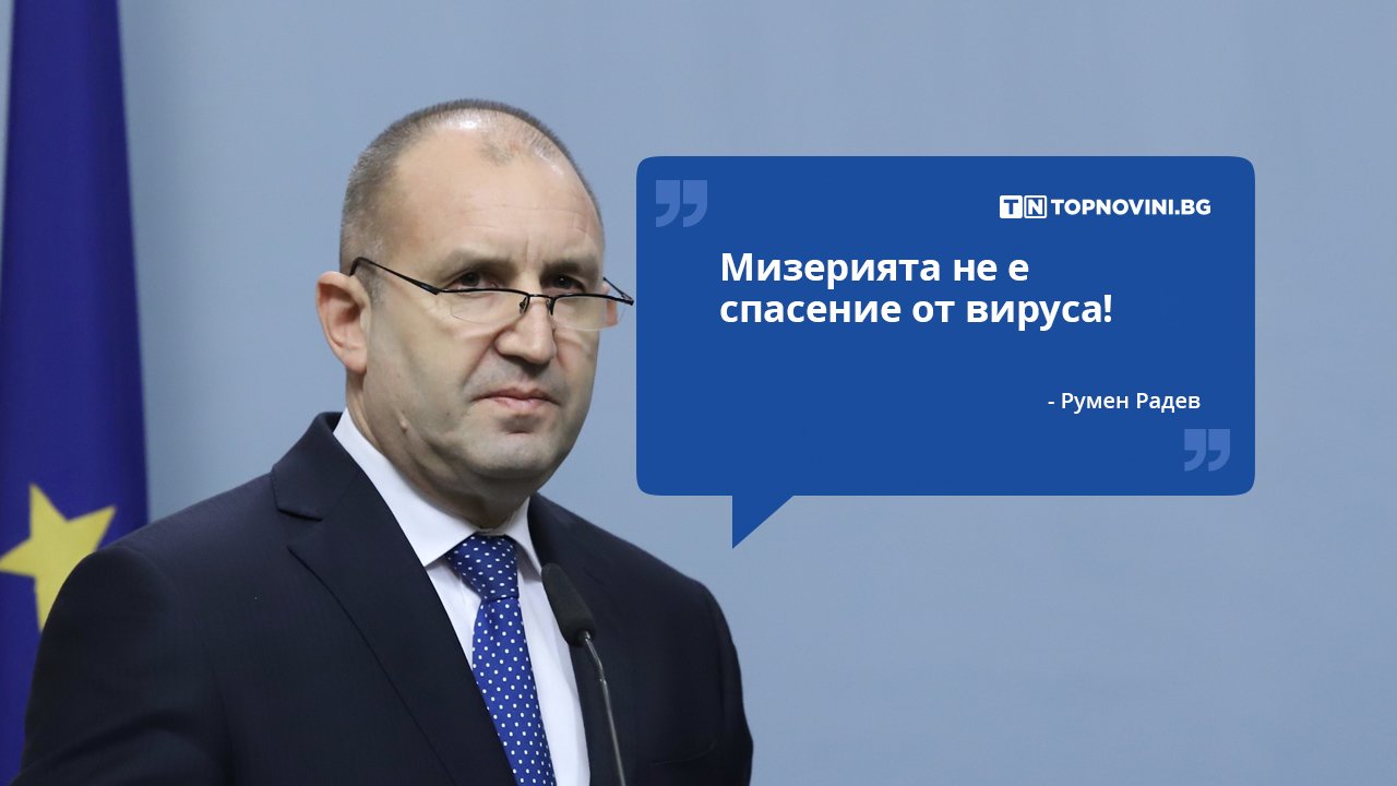 "Мизерията не е спасение от вируса...Затова трябва да си поставим ясна национална цел – възможно най-бързо, управляемо и безопасно връщане към относително нормален ритъм на живот, към производство, към свободно движение на хора и стоки... Част от мерките в извънредния закон и приетите впоследствие с решение на Министерски съвет се определят и от гражданите, и от бизнеса като недостатъчни, а някои от тях и за неудачни. Хората в нужда очакват помощ, а не оферта за заем... В условия на криза реалната помощ е безвъзмездната...Необходимо е в спешен порядък да се преразгледат и някои разпоредби на приетия в бързина и хаос закон, които блокират икономическия живот", коментира президентът Румен Радев.