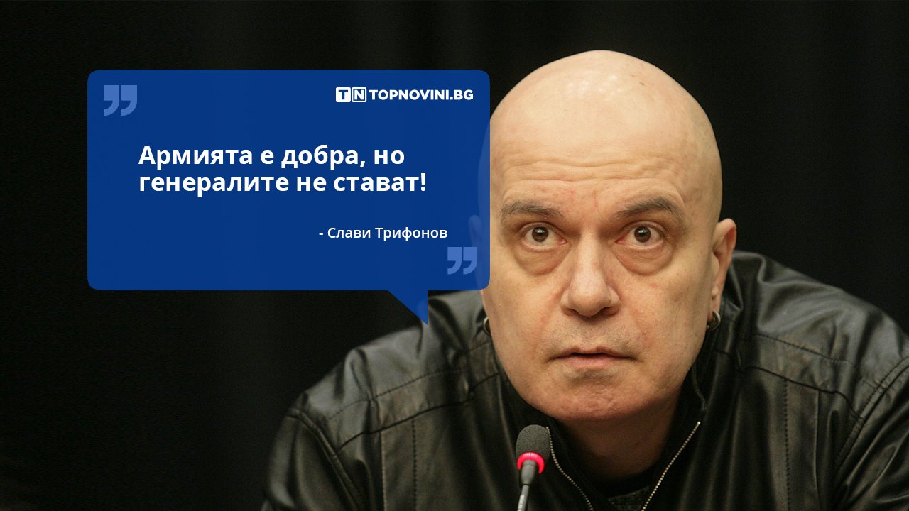 "Мисля, че армията е добра, но генералите не стават!...Българинът даде добър урок на управляващите, че може да е организиран, а те издават хаотични заповеди...Имам основания да се съмнявам дълбоко в ефективността на това извънредно положение... Според мен то не донее ефективност заради непрофесионалното и хаотично отношение на властимащите...Ген. Мутафчийски е преди всичко лекар и Хипократовата клетва е по-важно и много по-градивна от клетвата на един войник. Да даваш живот и здраве е много по-специално и важно от това да носиш смърт - каквото правят военните. Така че генералът се е объркал! Хареса му да е с униформа, хареса му да издава заповеди, но трябва да е щастлив, че е лекар!". Думи на телевизионния водещ Слави Трифонов за ефективността от наложеното извънредно положение и мерки за справяне с коронавируса.