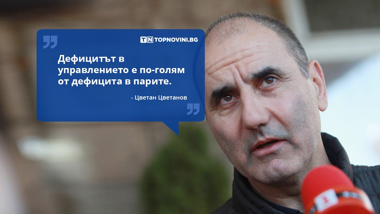"Обществото се нуждае от лидери, които да създават у хората усещането за сигурност, а не да всяват страх и паника. Дефицитът в управлението е по-голям, отколкото дефицитът в парите. Диалогът беше единственото средство, с което можеше да се излезе най-безболезнено от тази криза. Трябваше да се намери политическият консенсус. В момента изживяваме много тежка политическа конфронтация. Премиерът казва някакви реплики, президентът отговаря, опозицията недоволства от всички действия на правителството. Това показва, че обществото няма доверие в сегашното управление". Така председателят на управителния съвет на Евро-атлантическия център за сигурност Цветан Цветанов коментира отношенията на институциите у нас в условията на кризата с коронавируса.