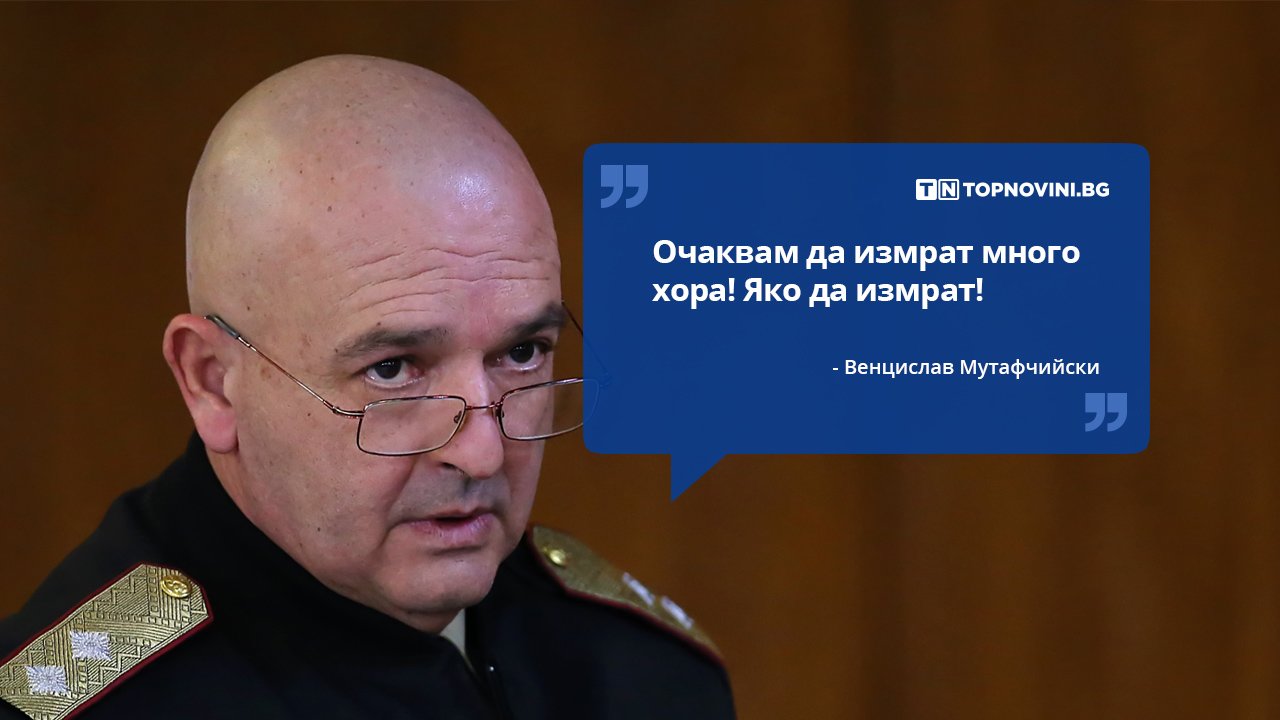 В разговорите за черната статистика се включи и председателя на Националния оперативен щаб ге. Венцислав Мутафчийски. След като се превърна в "лицето" на Covid-19 у нас, което всяка сутрин ни съобщаваше лошите новини за хода на новия вирус, генералът изпусна нервите си по време на журналистическо интервю и направи толкова крайно изказване, което прозуча като черна прокоба: "Очаквам да измрат много хора! Яко да измрат!". Уморен от безспирните журналистически въпроси ген. Мутафчийски коментира, че критиките към работата на щаба омаловажават и обезценяват работата на медицинските специалисти у нас.
