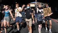 Недоволните коленичиха и скандираха „Без правосъдие няма мир“. Протестът им стигна чак до посолството на САЩ.