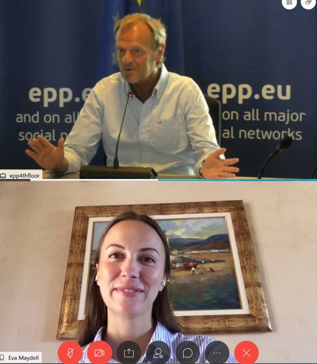 Българският евродепутат Ева Майдел (ГЕРБ/ЕНП) проведе онлайн среща с председателя на Европейската народна партия (ЕНП) Доналд Туск. „Политическите лидери от Европейската народна партия бяха тези, които изкараха Европа от финансово-икономическата криза предното десетилетия и вярвам, че можем да повторим успеха и в днешната ситуация. Видя се, че в криза европейците вярват на уверените лидери като председателя на ЕК Урсула фон дер Лайен, канцлера Меркел, премиера Борисов и другите лидери от ЕНП, които предприеха решителни мерки първо за справяне със здравния аспект, а след това и с осигуряване на финансов ресурс за възстановяване на икономиката“. Това заяви Ева Майдел по време на разговора с бившия полски премиер и бивш председател на Европейския съвет Доналд Туск, съобщиха от пресцентъра на ГЕРБ.