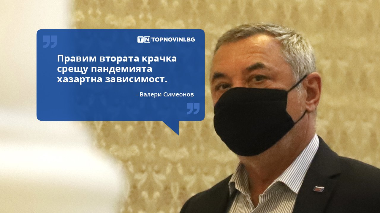 "Вчера в деловодството на Народното събрание с моите колеги внесохме законопроект, който подготвяме от доста време. Той е втората стъпка, която сме ви обещали, че ще предприемем срещу пандемията хазартна зависимост. Успоредно с коронавируса, България продължава да е потърпевша от тази болест, наречена хазартна зависимост. Прекалено широко са разпространени във всички български градове всякакви зали, които упражняват и предлагат хазарт. Това са основно казина, бинго, игрални зали". Това обяви лидерът на НФСБ Валери Симеонов във връзка с внесеното предложение от партията му законодателни промени, с които казина и игрални зали да могат да се изграждат само в курортите и скъпите хотели.