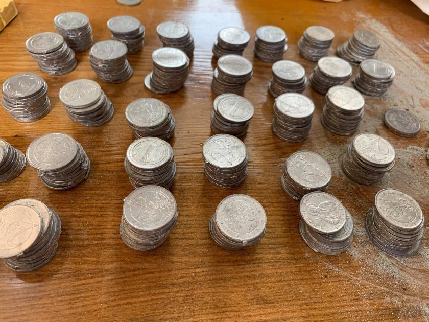 В хода им, на адрес на 30-годишен мъж в селото, са открити общо 957 готови неистински монети с номинал от 1 лев, 2 евро и 5 швейцарски франка, както и 16 заготовки за изливане на монети. При предприетите допълнителни огледи на същия адрес и на още един в село Червен, са намерени и иззети голямо количество боеприпаси, както и огнестрелни оръжия.