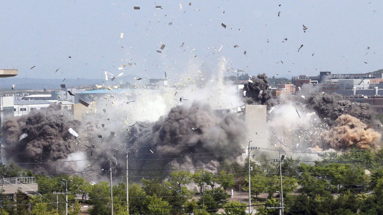 Днес в интернет пространството се появи видеоклип с кадри от вчерашното взривяване на офиса за връзка с Южна Корея в граничния град Кесон.