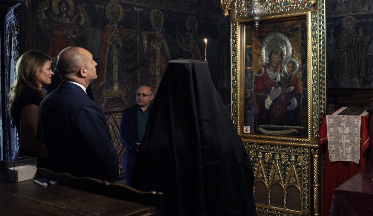 Президентът Румен Радев и съпругата му Десислава Радева посетиха Роженския манастир „Рождество Богородично“, предават от прессекретариата на държавния глава.