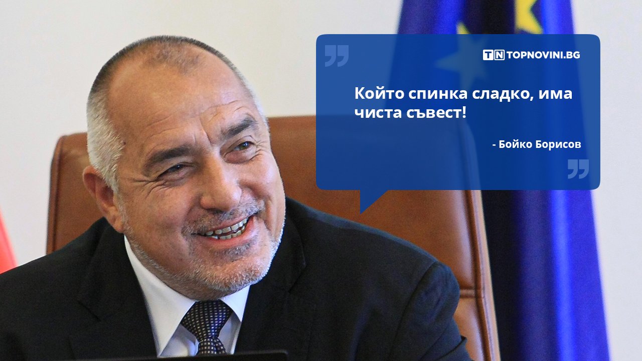 „Който спинка сладко, има чиста съвест...В отлична форма съм, за да ми е нужна подкрепа. Ние и хубаво, и лошо си го понасяме, ремонтираме, продължаваме напред. Като сме лоши, ни се уронва авторитетът, като сме добри, се вдига. Нито ми е за първи, нито за втори, нито ще спре. И е много ясно защо го правят...Което куче ме е захапало, все е побесняло! "Който може да играе карти, приятна игра". Това коментира лидерът на ПП ГЕРБ Бойко Борисов при среща със структурите на партията.