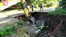 Екипи на ВиК-Благоевград, с тежка техника, работят по отстраняването на аварията.