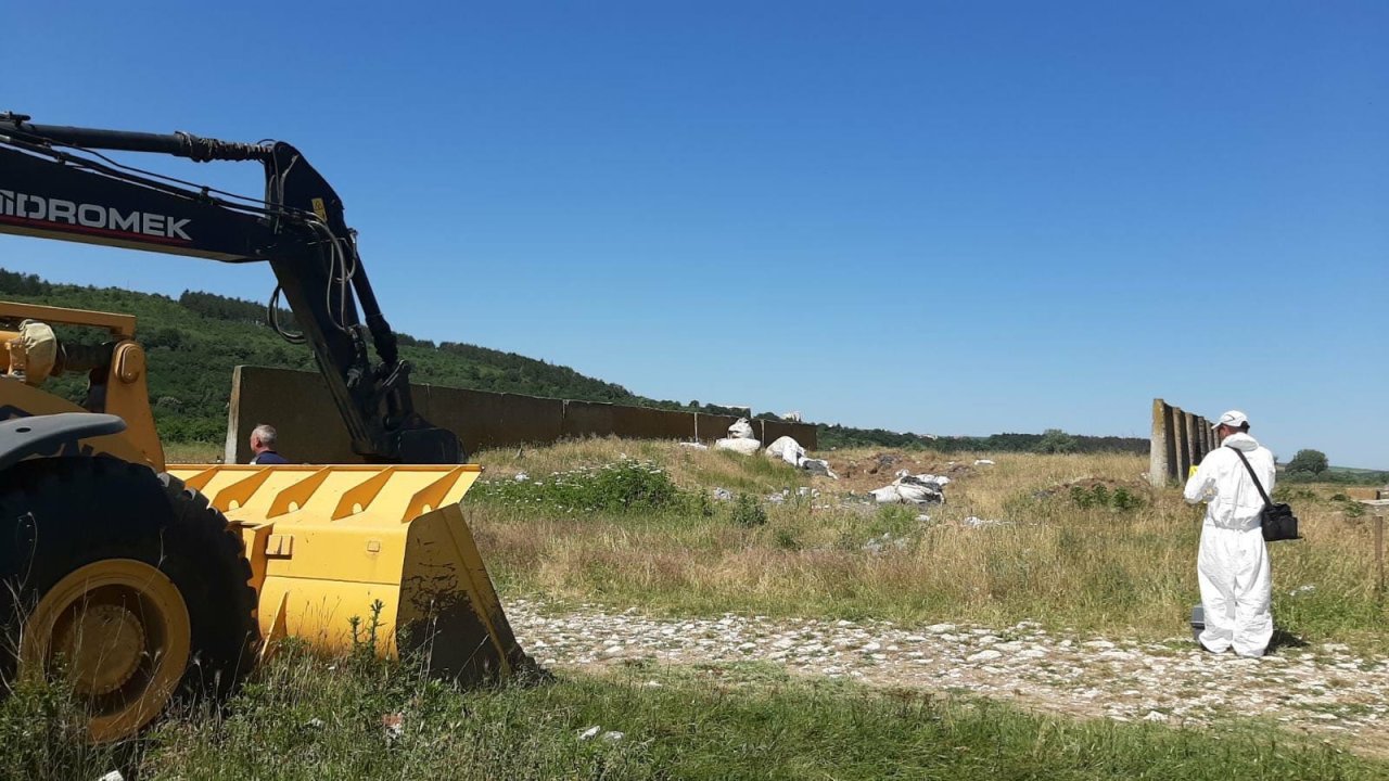 Огледът, който тече втори ден, е част от работата срещу организирана престъпна група, в която участват и длъжностни лица. Според експертите по външните белези на намереното досега боклукът може да се определи като опасен.