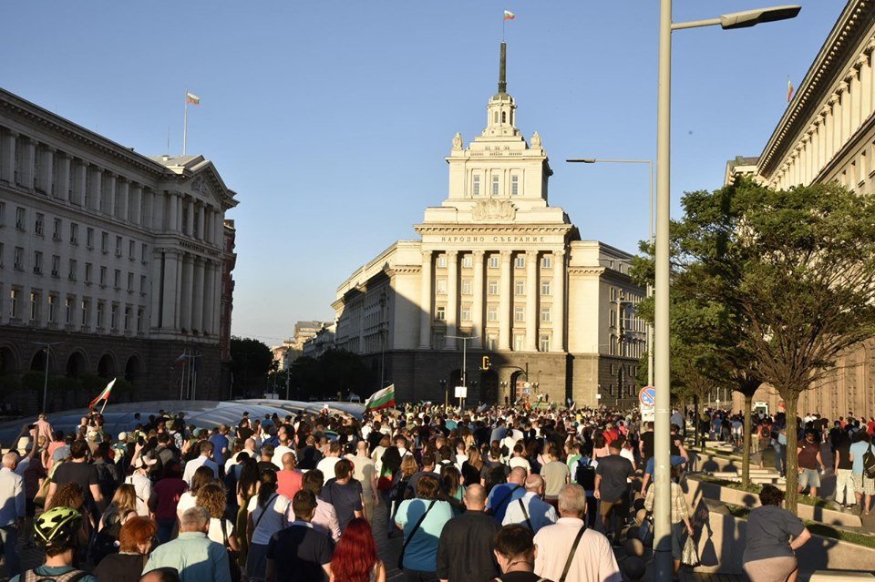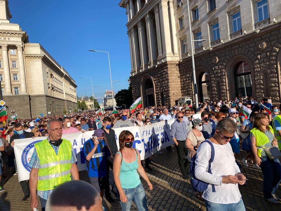 Хиляди граждани настояват в центъра на София за оставките на премиера Бойко Борисов и главния прокурор Иван Гешев.