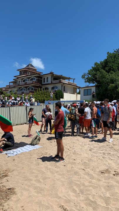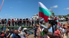 Активистите на ДПС и протестиращите на плажа "Росенец" пяха заедно химна на България.