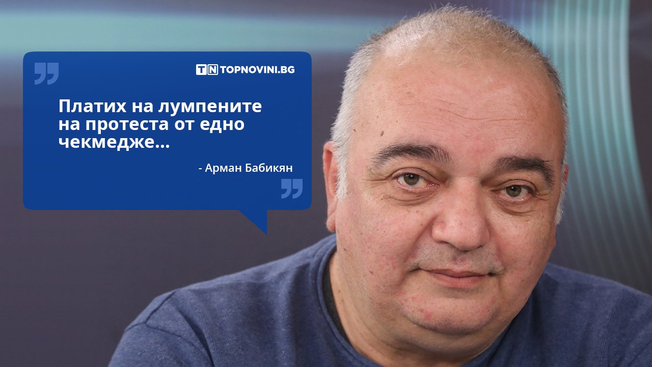 Аз не обиждам, цитирам министър-председателя. Не знам защо смятате, че е ирония". Така пиар експертът Арман Бабикян, който е сред инициаторите на протеста срещу правителството и главния прокурор Иван Гешев, иронично коментира в ефира на "Нова телевизия" опорните точки на правителството срещу гражданското недоволство.