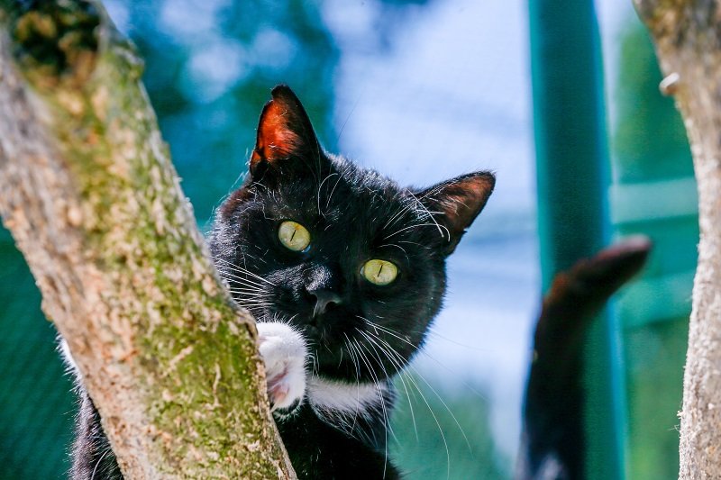 Забавната случка се е разиграла в руския курортен град Анапа в Краснодарския край. Кадри от подвизите на котето, запечатани от охранителната камера, са качени в Instagram.