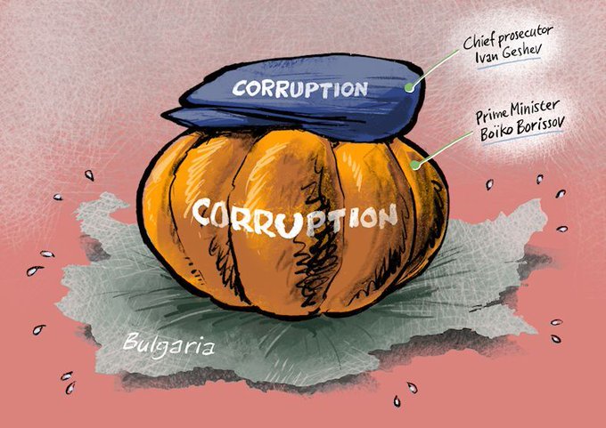 The PM (nickname The #Pumpkin) and the chief prosecutor (nickname The #Cap) of #Bulgaria are accused of #corruption. #Bulgarians on the street (again) @CartoonMovement @CartooningPeace @Joop #boikoborissov #borissov #ivangeshev #geshev #Ivanov #hristoivanov @Bulgaria pic.twitter.com/DIvk4GZmwT