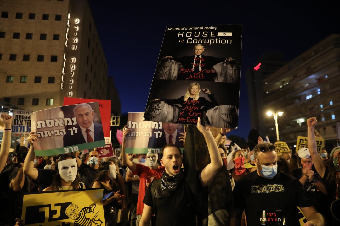Хиляди други излязоха по улиците на Тел Авив, за да протестират срещу корупцията и начина, по който правителството се справя с пандемията.