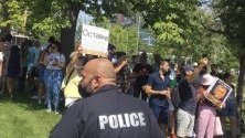 След края на събитието участниците в срещата на ГЕРБ отново бяха посрещнати от протестиращи. Наложи се жандармерията да освобождава кръговото кръстовище в района на 4-ти км, за да могат партийните активисти да си тръгнат. Полицията направи верига зад пешеходната пътека, но се стигна до сблъсъци – автомобил на делегат от ГЕРБ мина през крака на един от протестиращите и бе нападнат от събралите се демонстранти, а един от прозорците му – счупен.