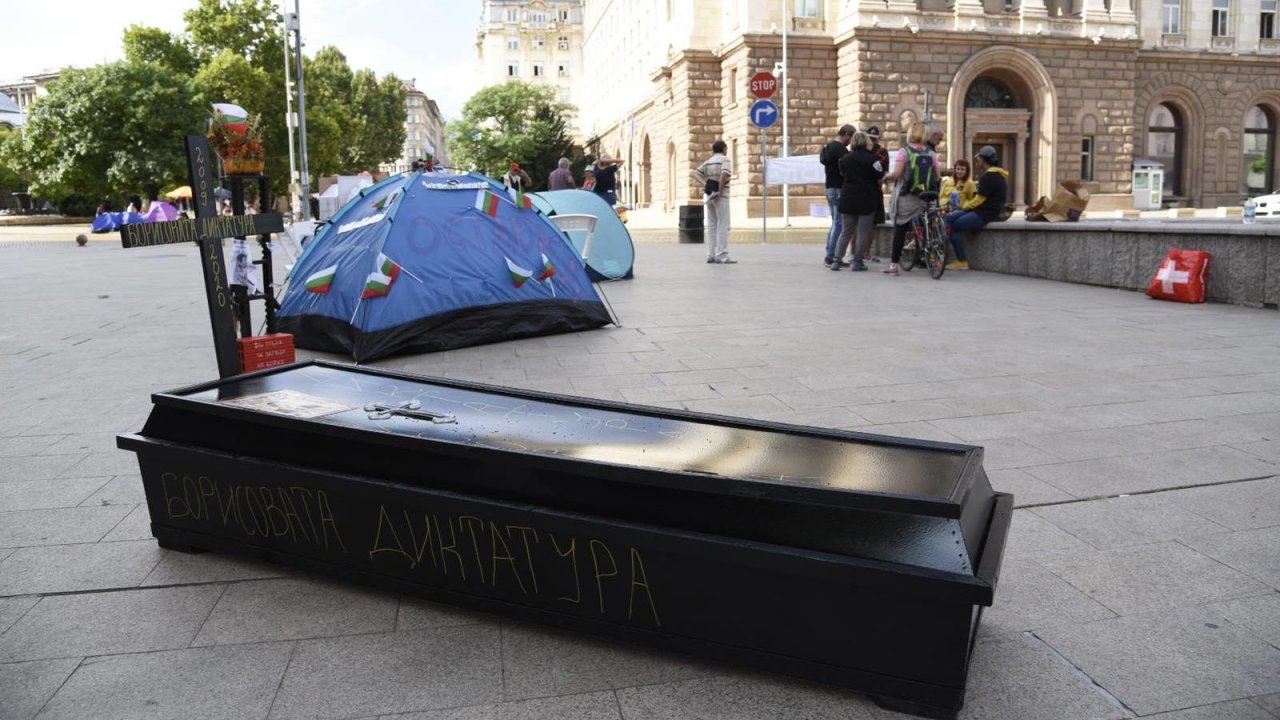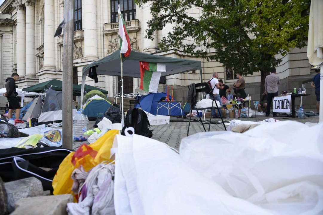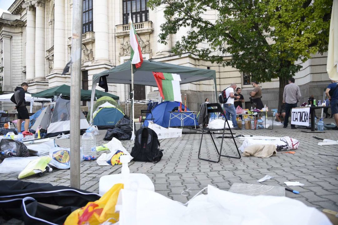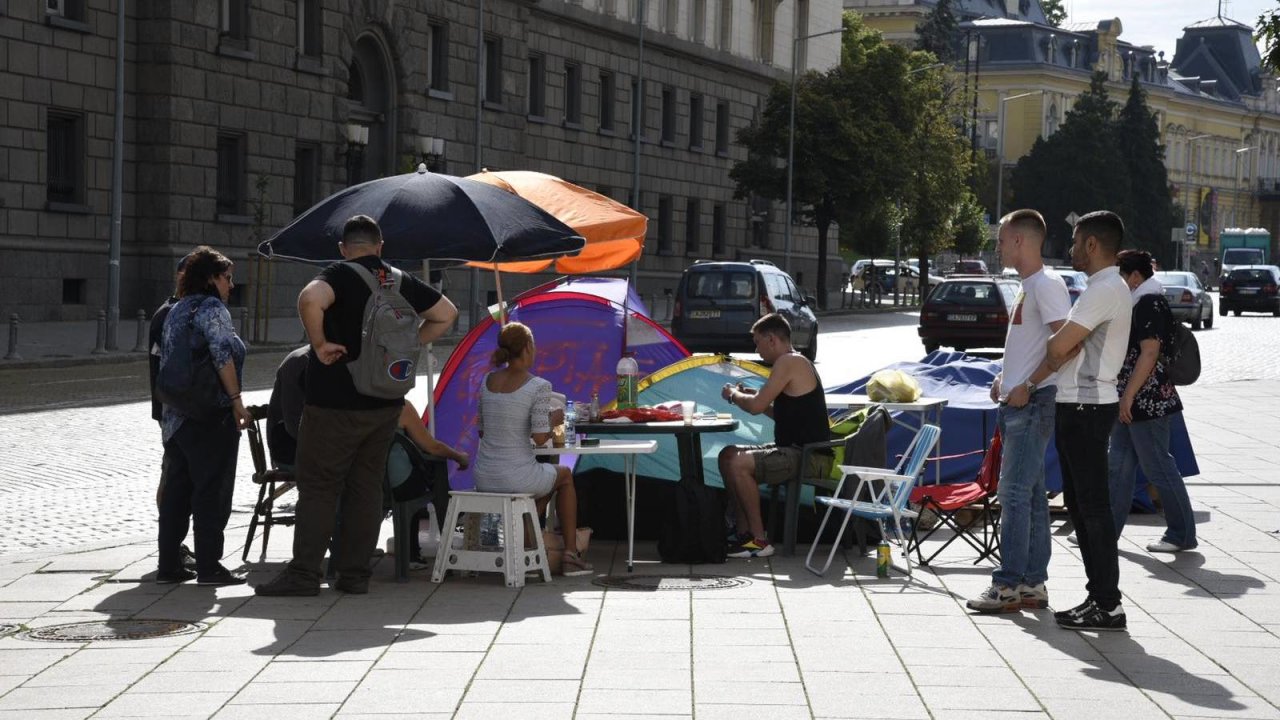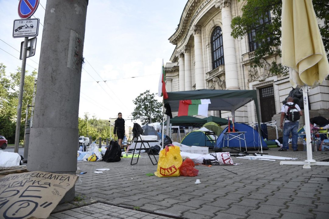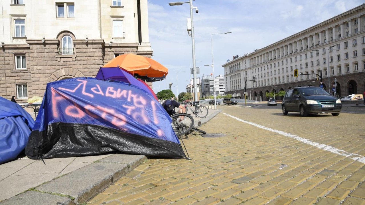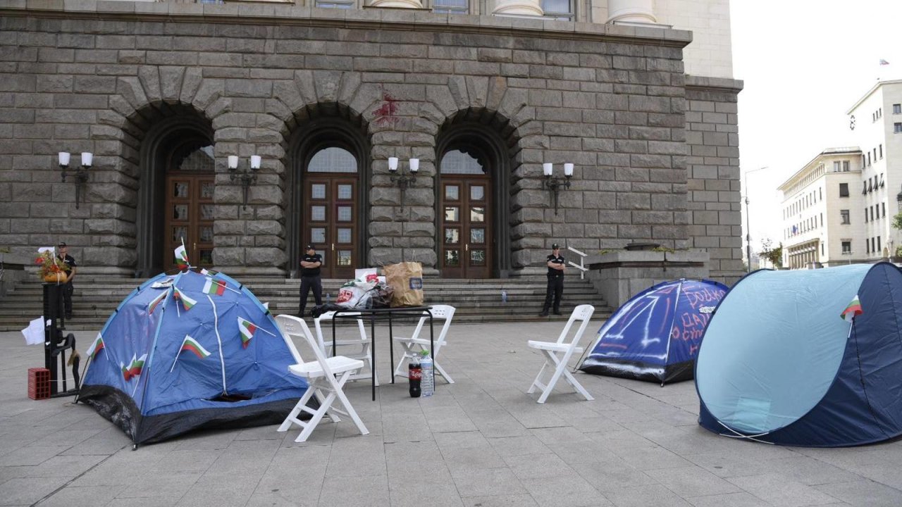 Палатки има пред Партийния дом и президентството, както и на тротоара пред Софийския университет. Полицейското присъствие е засилено.