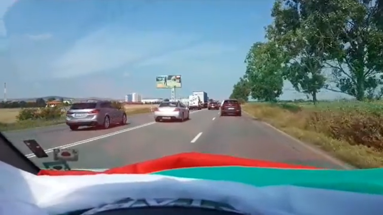 Нова акция на организаторите на антиправителствените протести „Отровното трио“. Автомобили с български знамена тръгнаха на протестно шествие по пътя за граничния пункт „Калотина. Демонстрантите скандираха „оставка“ и надуваха клаксони.