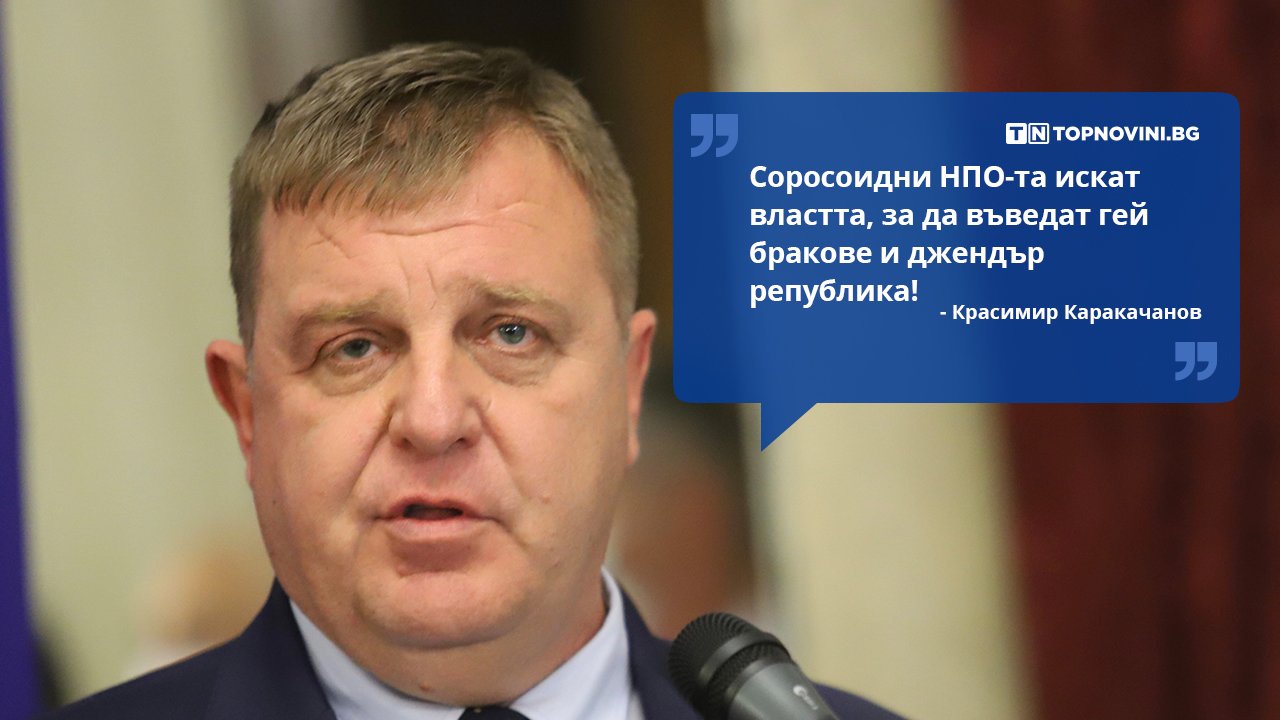 „Хората, които първата вечер отидоха - с качулките и с маските, бяха приготвили бухалки и запалителни течности, с идеята да ги хвърлят по полицията или да нападат полицията, с ясното съзнание, че при такива действия ще има отговор. Полицията постъпи мъдро и не ги атакува. Подобни неща не могат да се търпят вече. Не може в името на това няколко соросоидни НПО-та и партийки, които са извън парламента, да се докопат до властта ти да разсипеш държавата. И в името на какво? Да ми доведеш гей браковете и да ми създаваш джендър република. Съжалявам, не съм съгласен“, заяви Каракачанов.