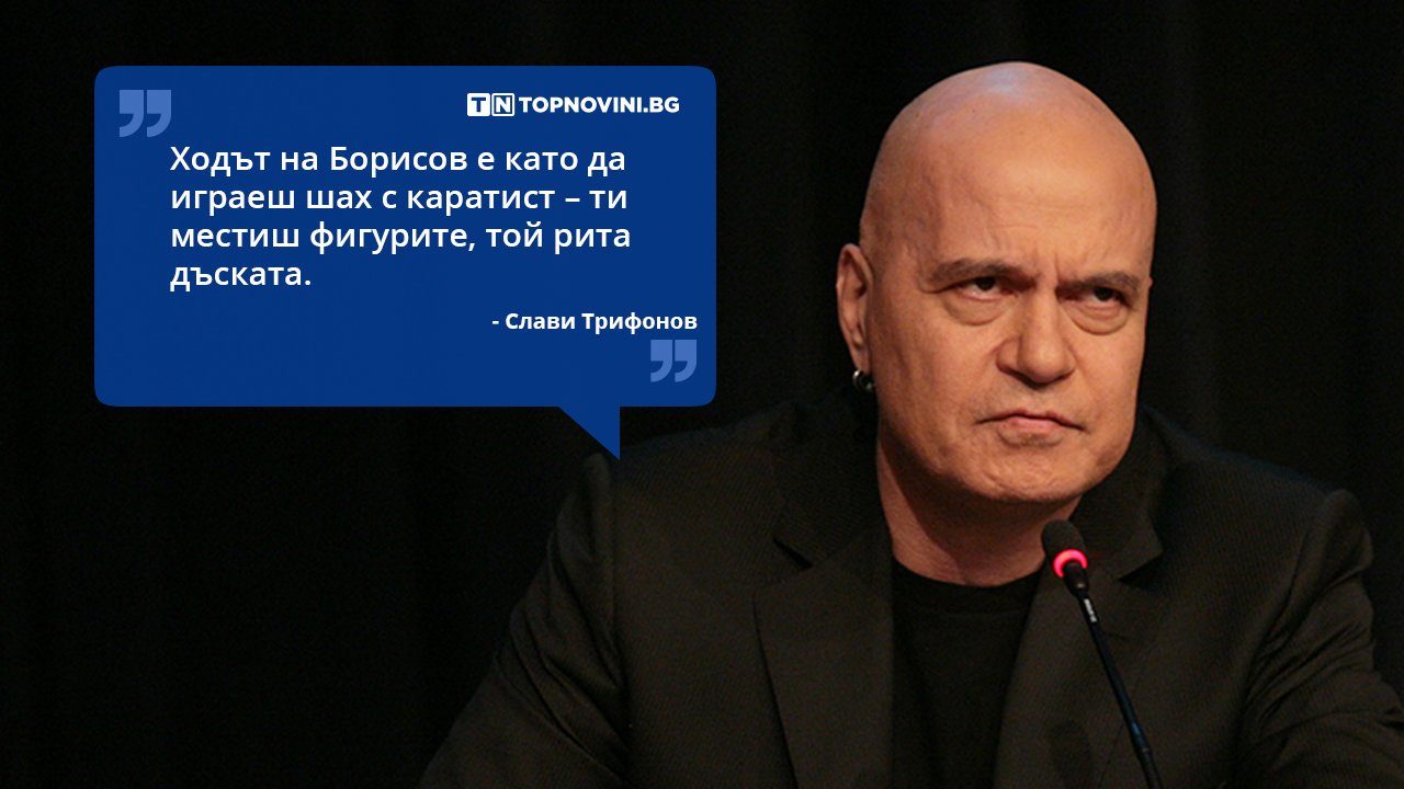 - оставка на това правителство, служебно правителство и предсрочни избори!". Така телевизионният водещ и лидер на партия "Има такъв народ" Слави Трифонов коментира идеята на Борисов и правителството.
