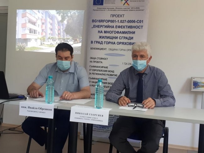 С пресконференция в ОИЦ, приключиха дейностите по проект „Енергийна ефективност на многофамилни жилищни сгради в град Горна Оряховица“. На събитието присъстваха заместник-кметът по финанси Николай Георгиев, ръководителят на проекта инж. Ивайло Обрешков и други представители от екипа, които обобщиха реализираните дейности, постигнатите цели и резултати.