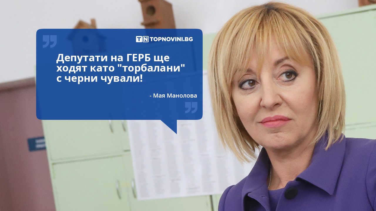 "Депутати на ГЕРБ ще ходят като "торбалани" с черни чували". Думи на председателя на Гражданската платформа "Изправи се.БГ" Мая Манолова в коментар за промените в Изборния кодекс, които предлагат от ГЕРБ.