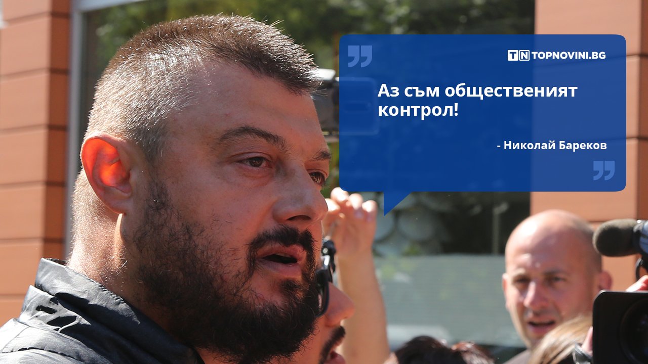 "Аз съм общественият контрол – не сте вие. Аз съм гражданин безработен, многодетен баща, жертва на олигархията – човек, който унищожиха Борисов, Пеевски, Доган и Прокопиев". Думи на бившия евродепутат и журналист Николай Бареков при акцията му пред централата на "Да, България". Изказването му е насочено към Иво Дошев и страницата му "Обществен контрол".