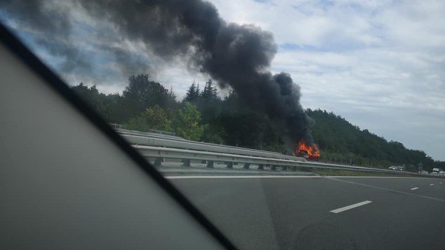 Автомобил се самозапали по време на движение при 69-ия км на автомагистрала „Тракия“.