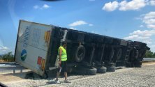 По чудо при инцидента не са пострадали други автомобили, преминаващи наблизо. Товарът не се е разсипал на магистралата. Тежка техника се опитва да изправи камиона на пътя.
