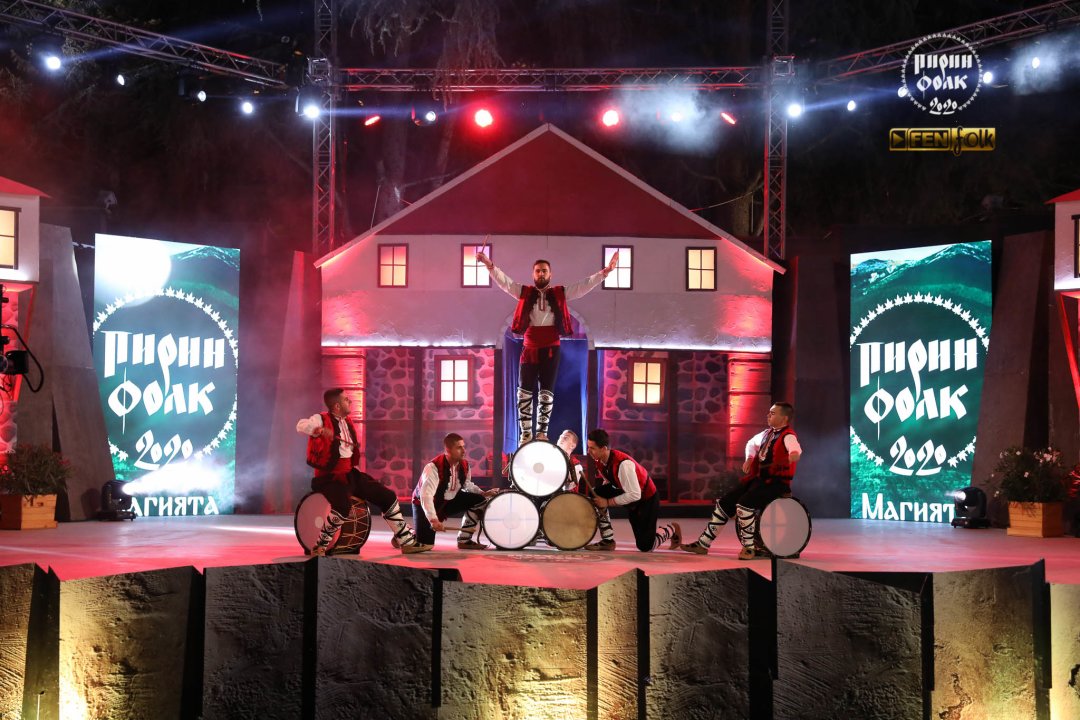 Тази година откриването на галавечерта бе доверено на местния танцов състав „Празник“ с ръководител Михаил Митрев и техния „Танц с тъпани“. Хореографията завърши с емоционален стих, посветен на Сандански и написан специално за „Пирин Фолк“ 2020 от Мариана Калоянова. Разбира се, традицията с изпълнението на химна „Добре дошли в Сандански, приятели“ също бе спазена.