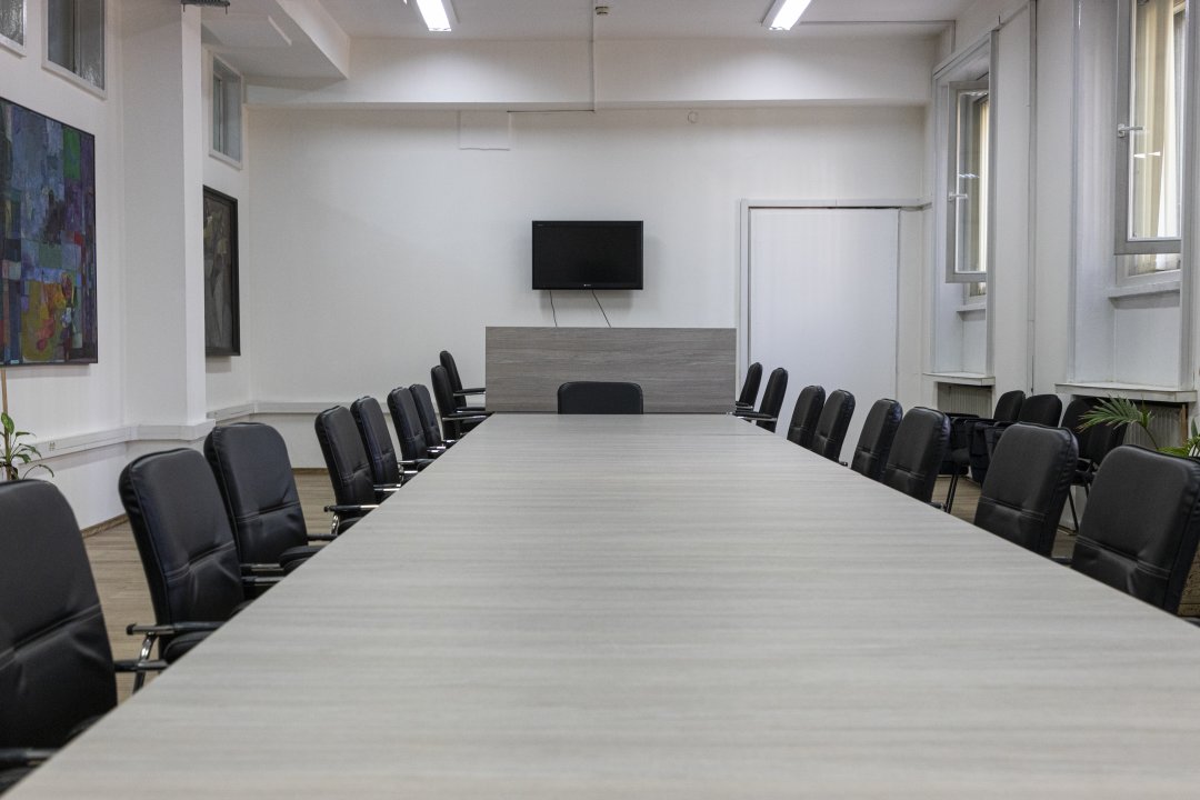Влизането в другия свят, този на настоящето, става по син килим, който води до обновените зали, например тази за пресконференции, която се намира точно под новата пленарна. Впечатление прави приликата с подобни зали в европейските институции.