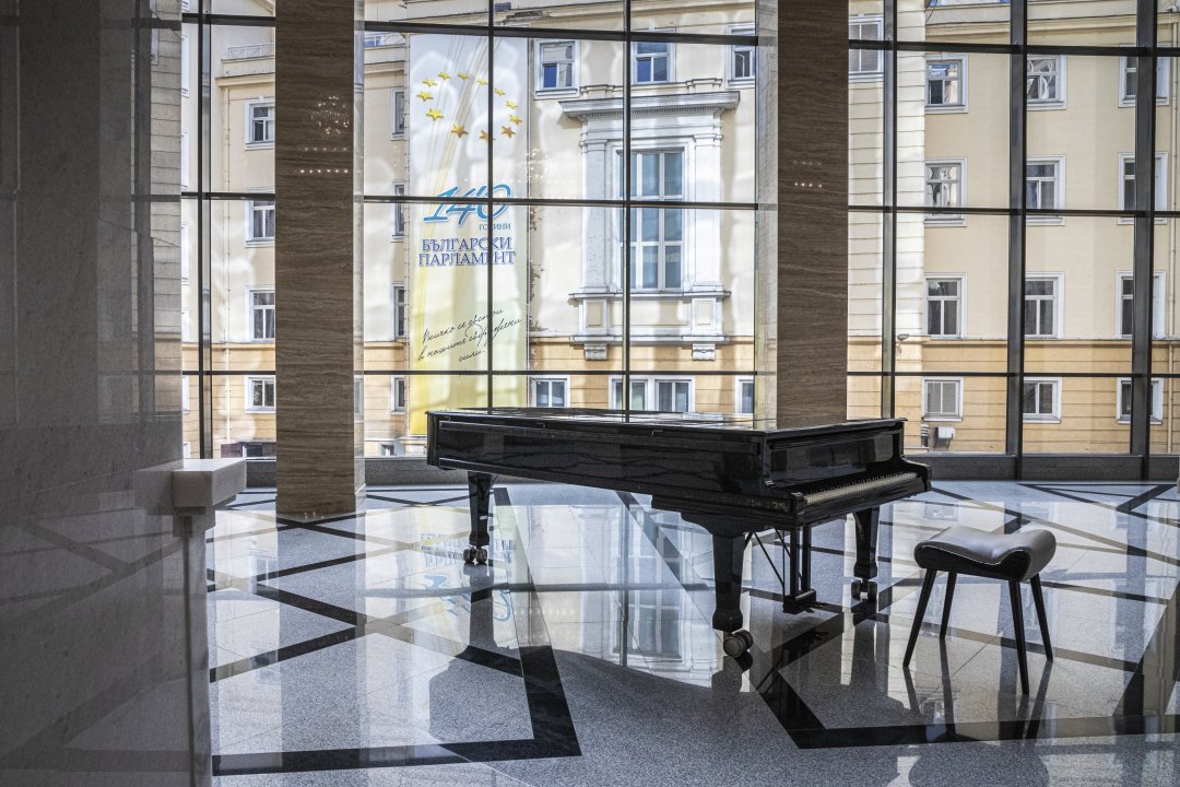 Доизградена е стъклена част с асансьорите, които водят до пленарната зала. Пространството е с изчистен дизайн и роял в центъра. Гледката на пръв поглед е транспарант с надписа 140 години български парламент, с цитат на Васил Левски.
