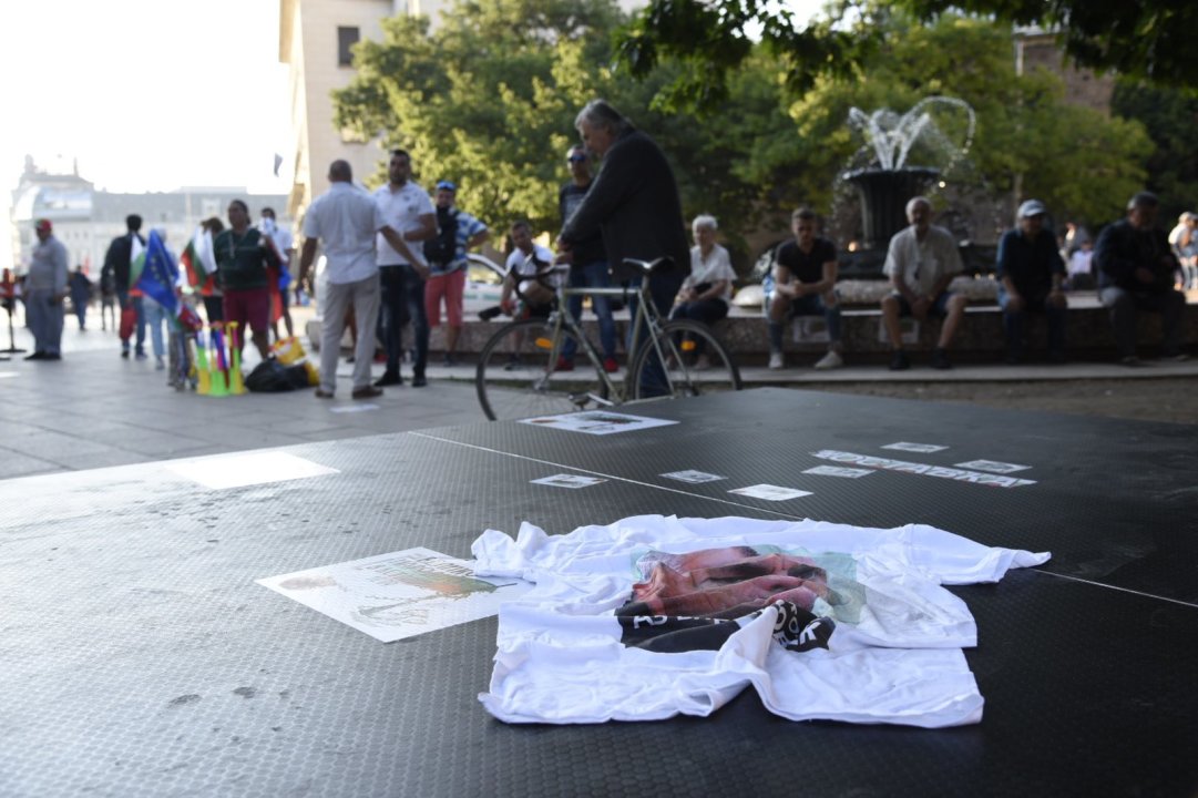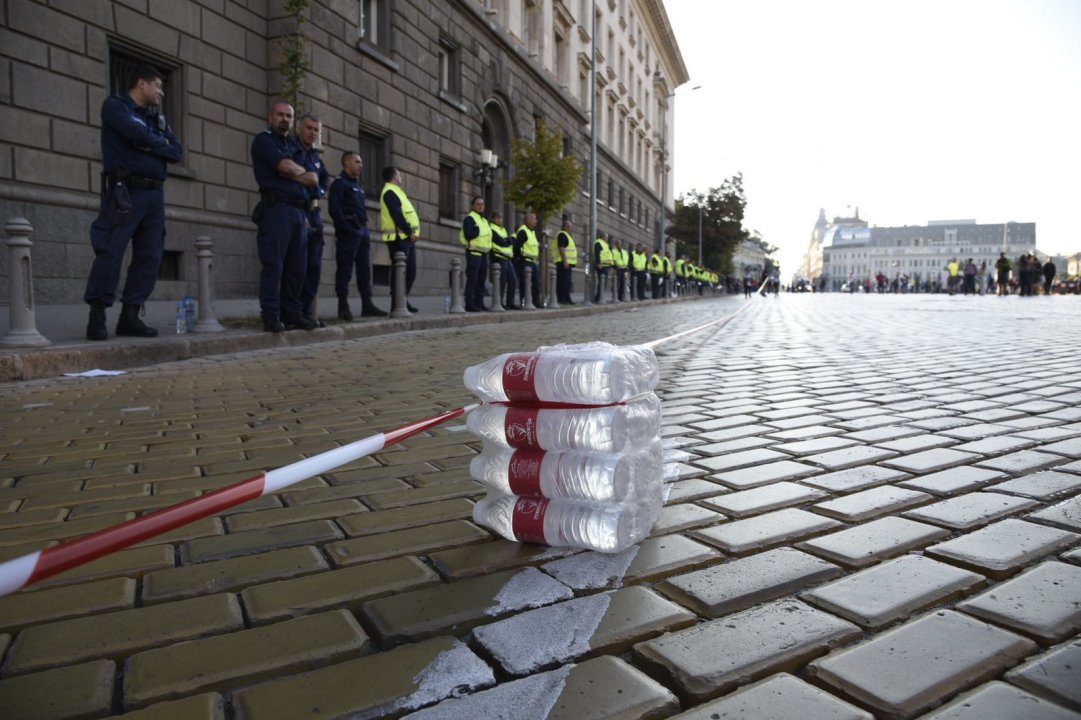 По-рано днес полицаи претърсиха усилено района около Народното събрание, където се събраха протестиращи, за да проверят за забранени предмети. Намерени бяха стъклени бутилки, павета, ножове, спрейове, чували с камъни."Част от тях са обезпокояващи. Намерихме доста камъни, ступани на купчини. Не отправям никакви обвинения. Тук намерихме и предмети, които може да са останали от вечерта и е нормално да ги има в парка. Отстранено е всичко. Притеснителното е, че в един храст старателно бе скрита туба с цветна течност. Също и 9 половин литрови пластмасови шишета с някаква течност", обясни зам.-шефът на охранителна полиция Тони Тодоров.