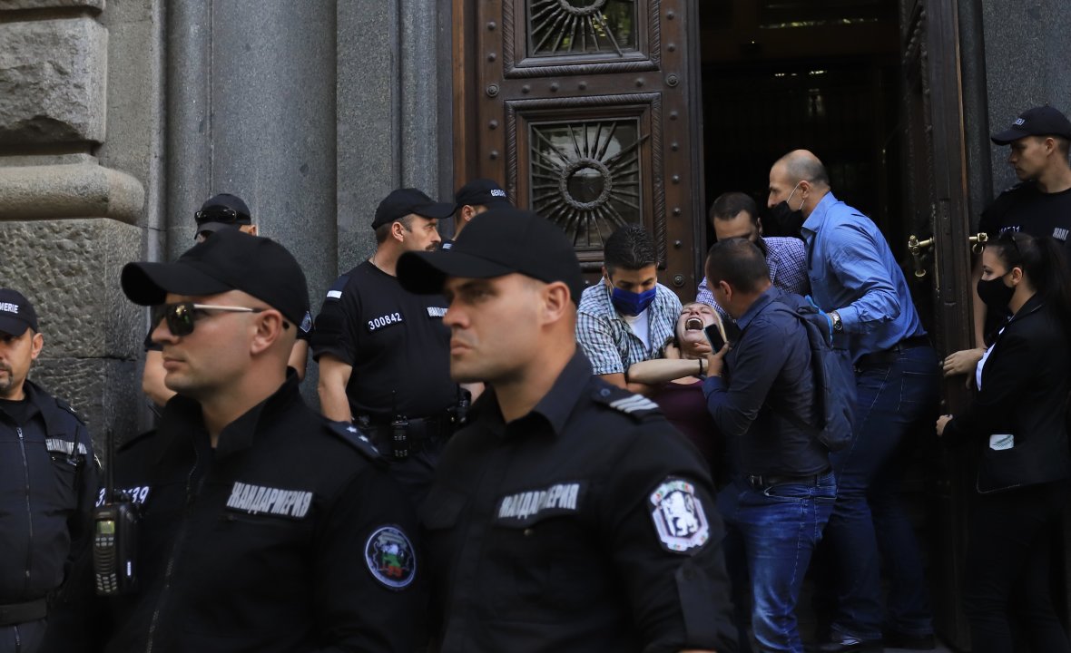 Минути след 18:00 часа от НСО изведоха протестиращите, използвайки сила, като се позоваха на Закона за НСО. Те бяха освиркани от събралите се пред входа на парламента граждани, които скандарит: "мафия", "еничари" и "оставка".