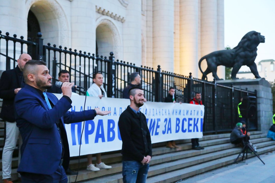Младият мъж говори и по-рано пред сградата на Съдебната палата по време на протестната инициатива „Правосъдие без каскет”.