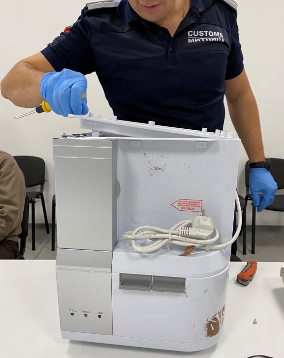 Митнически служители извършили физическата проверка на пакета и установили, че той съдържа диспенсър за вода, в който са скрити шест вакуумирани пакета, пълни със сухо тревисто вещество. При полеви наркотест веществото реагирало на марихуана, като общото му тегло е 3,190 кг., съобщиха от Агенция „Митници“.
