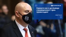 „Аз вярвам в нещата, които правя. Вярвам, че на България ѝ трябва време да се промени и да стане по-силна. А промяната, която аз мога да направя със структурата, която аз представлявам, е справедливост чрез правосъдие. Може би това е моята карма“. Думи на главния прокурор Иван Гешев в документален филм за рода Гешеви - "Не бягам, а се бия", на телевизия "България 24".